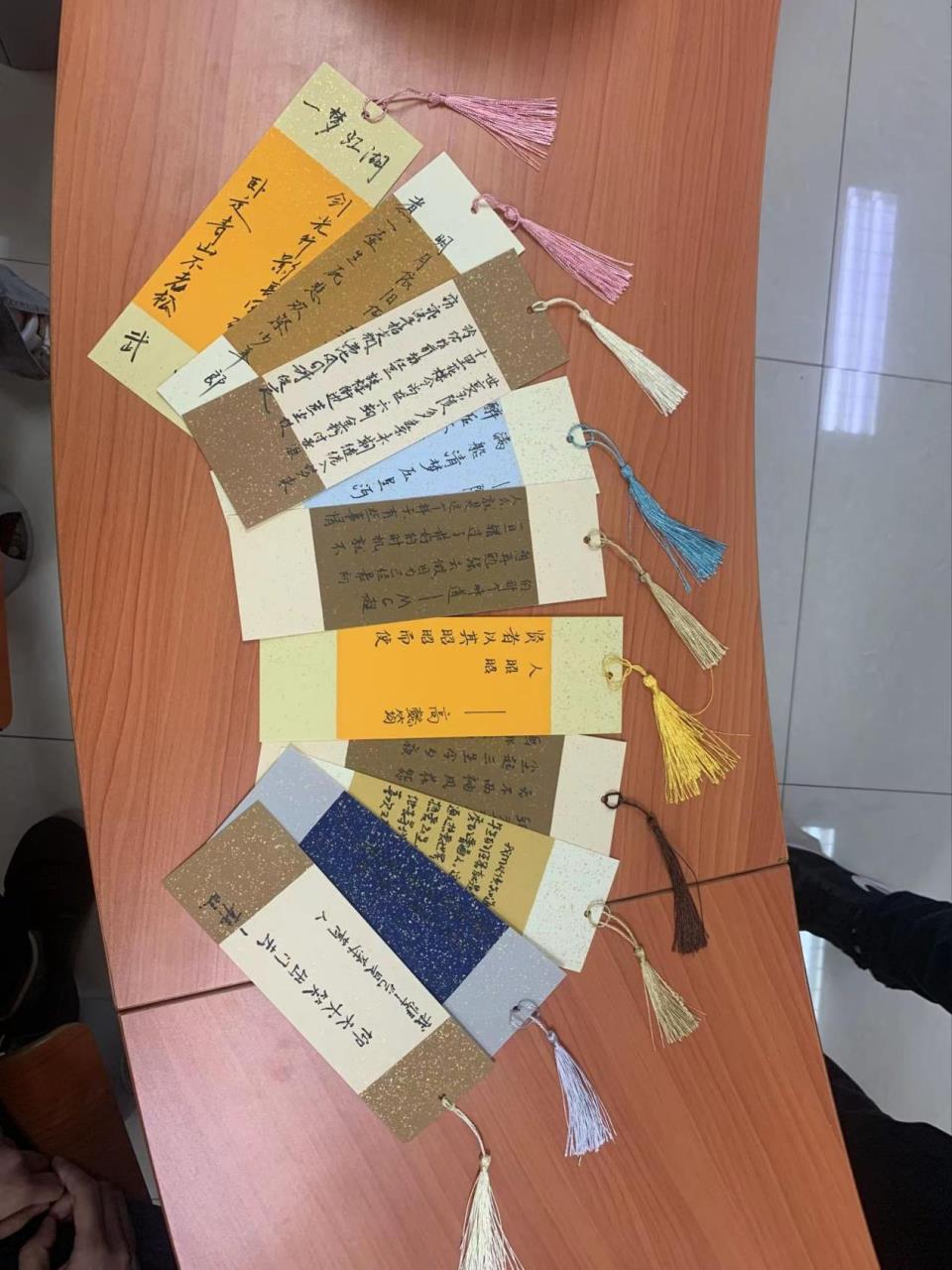 首先,李尚为大家介绍了整个的活动流程,并观看了“习近平总书记的读书故事”纪录片,同学们感触颇深。接着,由鲍俊霖同学为大家进行了好书推荐,包括《1984》《活着》等著名作家的杰出作品。最后,同学们在一起进行了书签DIY的活动。三班的同学能书善画,妙笔生花,制作了属于自己的“特别定制款”的书签。活动中还进行了抽奖,四位幸运的同学获得了班委会特别准备的书签奖品。