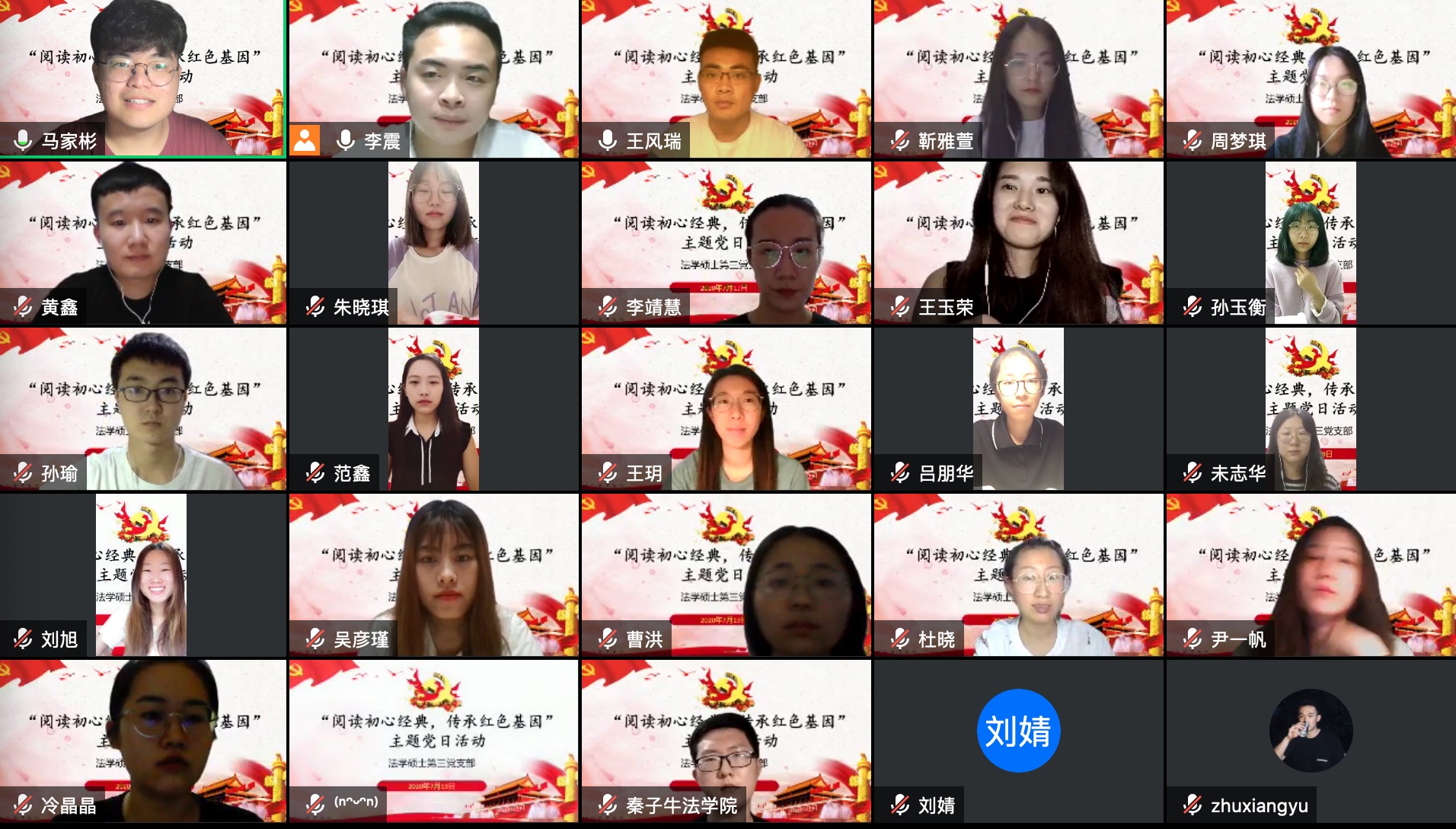 为构建“不忘初心、牢记使命”主题教育常态机制,切实增强党员的责任感和使命感,法学硕士第三党支部于今年6月至7月举办“初心教育”主题阅读月活动。经支部委员会研究决定,支部于7月19日晚在线上举办“品读初心经典,传承红色基因”主题党日活动,重温红色记忆。