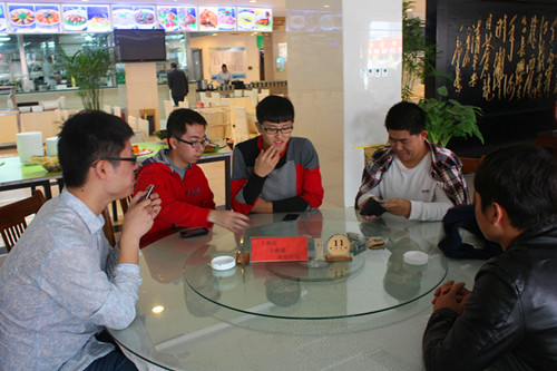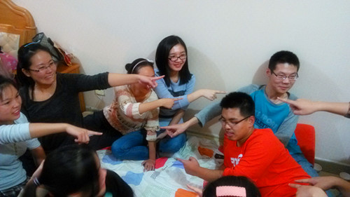 吃饭的时间大概持续了两小时,大家的胃都得到了彻底的满足。于是,饭后游戏便要隆重登场了。这次的游戏形式虽然相较以前没有什么新意,但是重点不在其形式,而在其内容。真心话,各种无节操无下限,鄙人实不能以书面表达之,但也有温馨的问题,让大家看到未曾见过的羞涩的那一面;大冒险,不险,只是以半生不熟之鸡蛋两个伺候,蛋黄仍成液态,或不能忍受生吞,或不能再吃下,只有两人选择大冒险。真心话,大冒险,就是要挖出你心里最深处的秘密,哈哈哈。