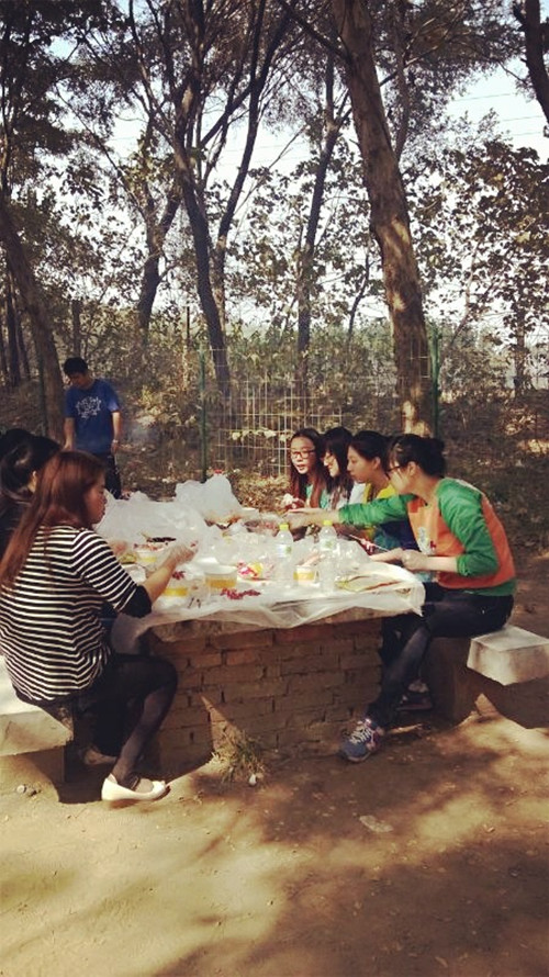 终归是吃饱了,每个人都满足的坐在旁边回味弥留在舌尖的香气与滋味。回想之余,有的同学拿出了游戏牌,准备几个伙伴一齐来一局,玩儿着玩儿着就吆喝了起来,不敢说不热闹;还有几个准备结伙去打一场真人CS,专业的、凑热闹的,都被吸引了去,终究要配好装备来一次实战;野外公园的独特风景也不能放过,趁着刚刚吃饱的功夫,好几个温柔姑娘享受的欣赏美景了。餐后的玩耍给本就温热的团体又添上了一层凝聚,好像这一次的轻松将每个人内心的顽皮与活泼都尽情的释放出来了。