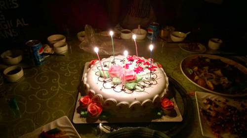普三三岁了,于是由班委带头、全体同学投票表决,我们定在阿拉木汗为我们的普三家庭庆生。