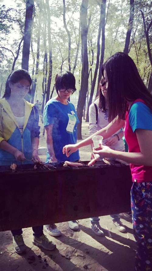 虽然大部分同学年过二十,但仍然调皮的称呼烤肉最棒的同学为“老板”,也耍赖似的向烤饼最香的同学讨一个又一个的饼,即使嘴里嚼着肉、吃着饼,但欢笑声却一层比一层的响亮。