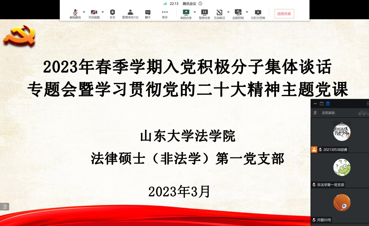 2021级法律硕士(非法学)第一党支部召开“2023年春季学期入党积极分子集体谈话专题会暨学习贯彻党的二十大精神主题党课”