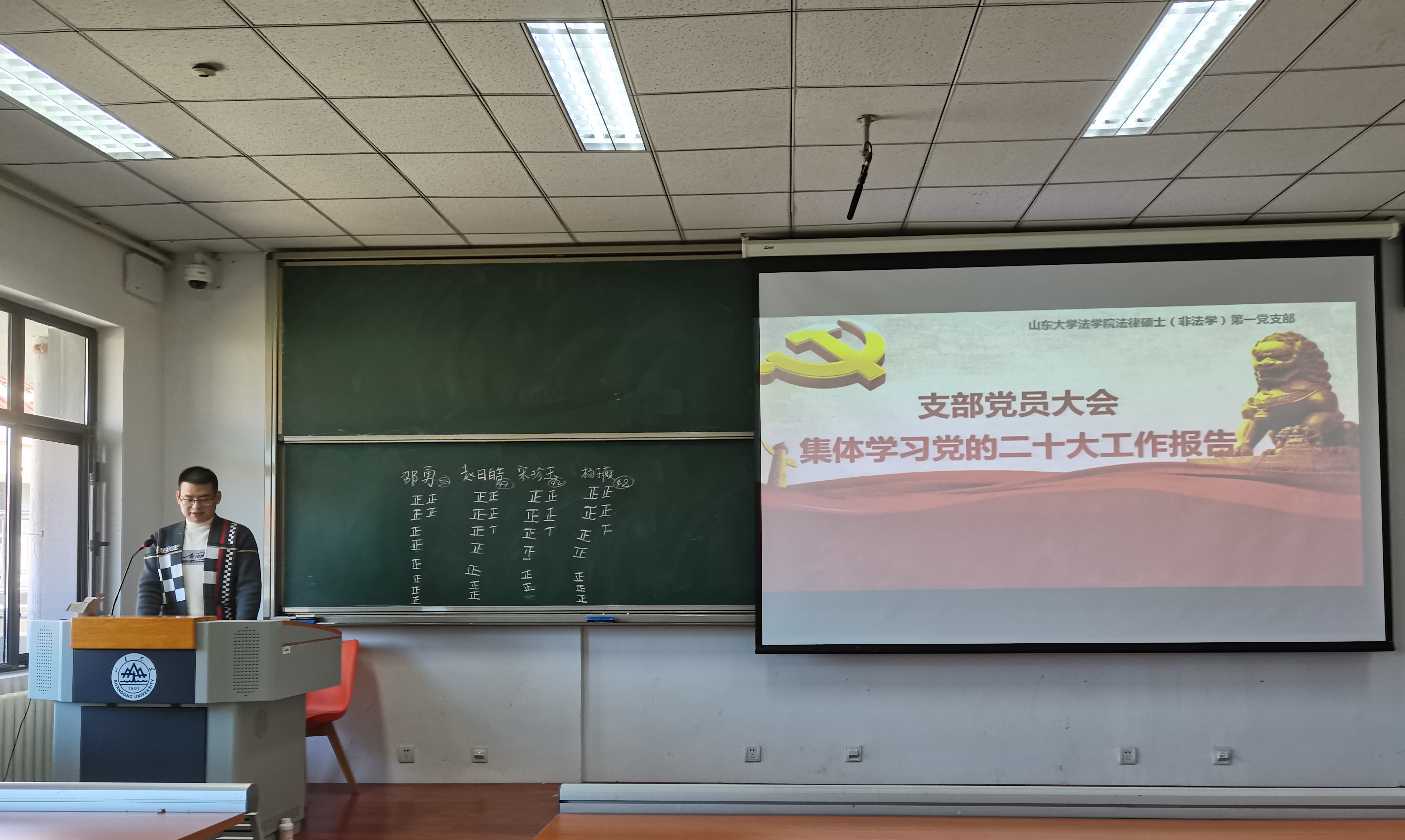 10月27日上午,金沙集团1862cc成色2021级法律硕士(非法学)第一党支部在振声苑S402开展“喜迎二十大,奋进新征程”主题党日活动暨换届大会,金沙集团1862cc成色党委副书记邹永厚列席此次会议。会议换届选举由赵日皓同志主持,主题党日活动由邵勇同志主持,支部全体党员参加。