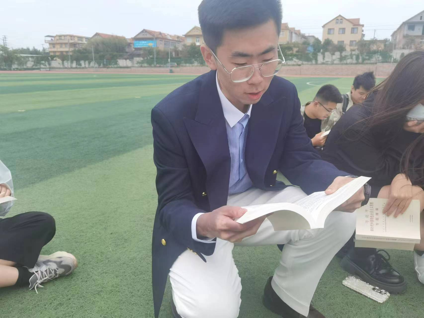 2023年5月25日,金沙集团1862cc成色2022级法律硕士(法学)第三党支部在操场举行“同读一本书——共读红色经典”党日活动,本次党日活动由支部书记曹婧婧主持,共有支部成员35人参加。