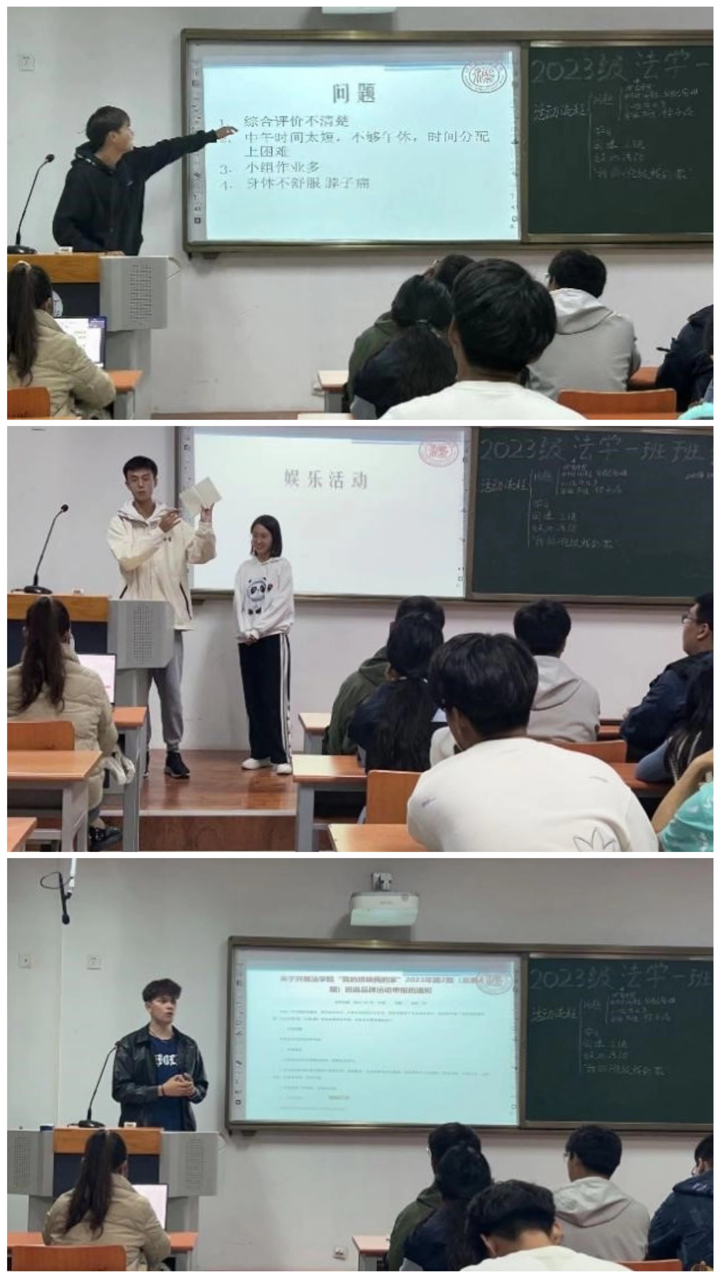 2023年10月27日,为促进班级内同学互相认识、提高班级凝聚力,一班组织了一场破冰班会,特邀请2022级一班学姐马沛然针对同学们开学以来遇到的疑难问题和学习困惑进行了解答,并且组织了丰富有趣的小游戏。这些举措让同学们对未来的大学生活中如何规划学习生活、如何处理人际关系等方面有了进一步的认识,促使同学们多元认识大学旅程,更好适应大学生活。