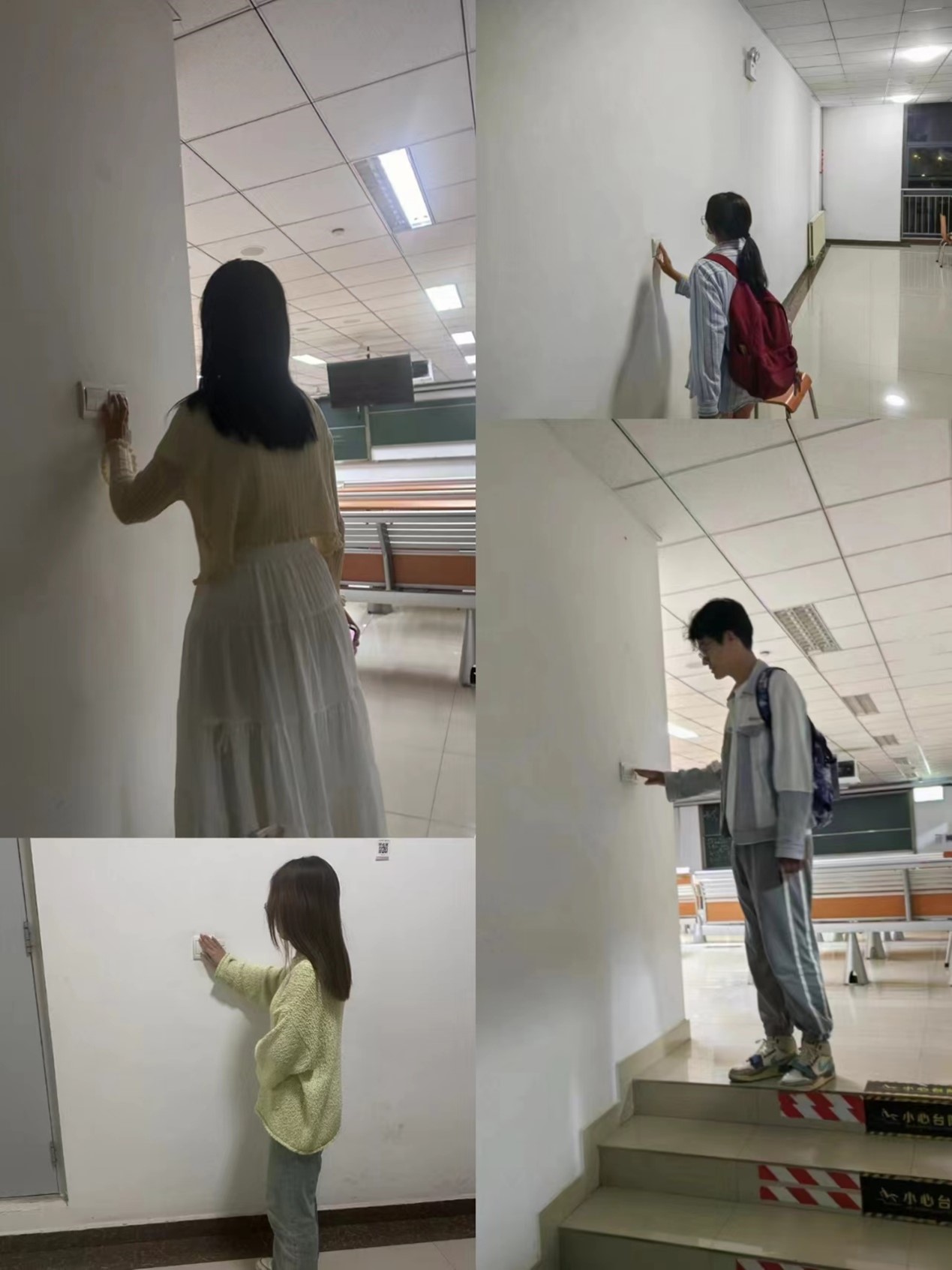 我们走进教学楼,开展关灯实践活动。经自愿报名,同学们每晚下课后在振声苑志愿巡楼,关掉无人使用的灯光。聚沙成塔,集腋成裘,虽然我们节约的电量可能微乎其微,但是这定能让同学们将节能减排理念内化于心、外化于行。